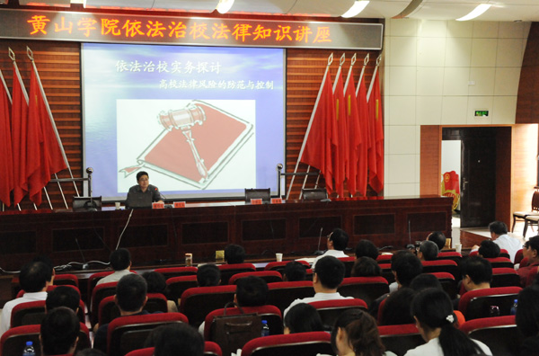 5月30日下午,我校在逸夫图书馆二楼报告厅举办依法治校法律知识讲座,邀请我校法律顾问、思政部副教授郑文兵主讲。院长汪建利主持讲座。在校的校领导,全体副科以上干部,教研室、实验室正副主任,全体专、兼职辅导员参加讲座。