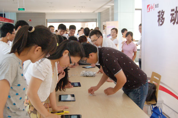 启动仪式后,读者在图书馆大厅设立的移动图书馆体验区内尽情地体验这项新服务,并对其给予极大的关注。