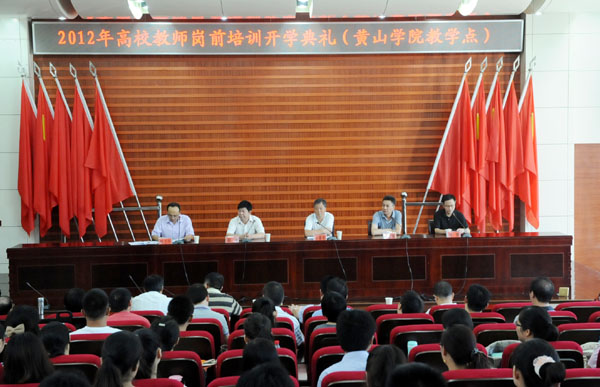 8月17日上午,黄山学院教学点2012年高校教师岗前培训班开学典礼在逸夫图书馆二楼报告厅举行。黄山学院院长汪建利、黄山职业技术学院院长方亮春、黄山茶业学校校长程明出席开幕式并讲话。