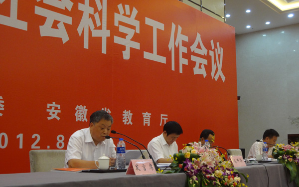 程艺在会上作题为《与时俱进,开拓创新,努力开创我省高校哲学社会科学繁荣发展新局面》的工作报告。他在报告中认真总结了我省高校哲学社会科学工作的基本经验,强调要抢抓机遇,切实增强繁荣发展高校哲学社会科学的使命感,部署了安徽省高校哲学社会科学繁荣发展在当前和今后一段时期要重点做好的主要工作。要坚持马克思主义的指导地位,继续推进马克思主义理论研究和建设工程;要加强基础理论和应用对策研究,努力培育新的学术领域和学科增长点;要完善哲学社会科学创新体系建设,激发创新活力;要推动文化传承创新,服务文化强省建设。