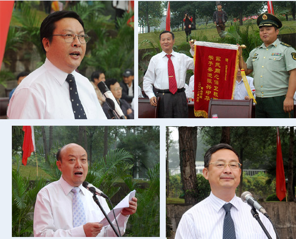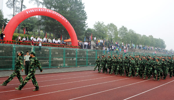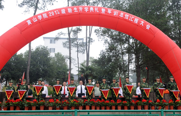 徐成钢在大会上致辞。他代表学校以及全校师生员工对各位新同学的到来表示热烈欢迎,并向长期支持我校军训工作的黄山军分区和武警部队官兵表示诚挚谢意。在介绍了黄山学院的历史发展和办学情况后,徐成钢向2012级新生提出四点希望:修身立德,做一个心胸宽阔、昂扬向上的人;勤勉立学,做一个追求真知、求是创新的人;弘毅立志,做一个志存高远、敢于担当的人;爱校立行,做一个文明礼貌、智慧博雅的人。