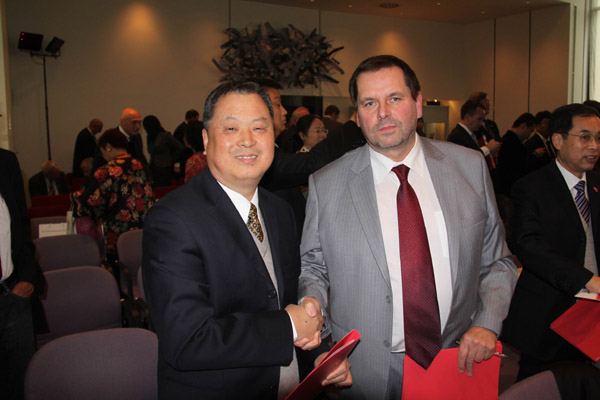 汪建利院长与施特拉尔松德应用科技大学校长福克•霍恩签署合作备忘录