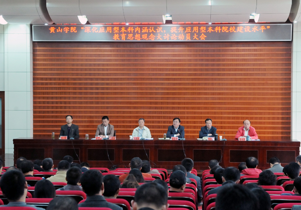 10月31日下午,我校在逸夫图书馆二楼报告厅举行以“深化应用型本科内涵认识,提升应用型本科院校建设水平”为主题的新一轮教育思想观念大讨论动员会,从而拉开了即将进行的为期两个半月的教育思想观念大讨论活动的序幕。全体校领导出席动员大会。党委书记徐成钢在动员会上讲话,院长汪建利作动员报告。动员大会由副院长樊嘉禄主持。