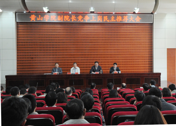 校党委书记徐成钢在讲话中指出,以竞争上岗的方式选拔校级领导干部在我校尚属首次,充分体现了省委、省委组织部、省委教育工委、省教育厅对我校干部工作的重视,对我校各级党组织和广大教职工的信任,也是对我校坚持内涵发展、特色发展、和谐发展,全面建设特色鲜明、综合实力较强的应用型本科院校的大力支持。在详细通报了前期工作开展情况之后,就如何做好本次民主推荐工作,徐成钢强调,副院长竞争上岗是我校深化干部制度改革,建立人才竞争机制的重要举措,也是推进我校干部选拔任用工作科学化、民主化和制度化的有效方式。他要求,参加民主推荐的同志要思想上高度重视,坚持原则,坚持标准,充分履行个人的民主权利,把德才兼备的同志选拔出来;参加竞争上岗的同志一定要恪守干部选拔纪律,禁止任何形式拉票违纪行为的发生,确保这次竞争上岗工作顺利推进。