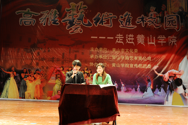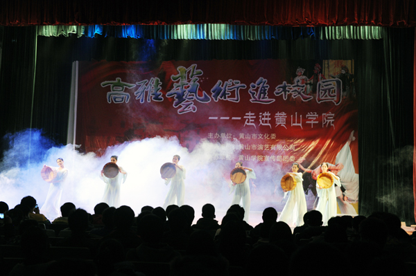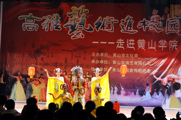 12月14日晚,由黄山市文化委主办,黄山市演艺有限公司承办,我校宣传部、团委协办的高雅艺术进校园文艺演出在大学生活动中心举行。市人大常委会副主任汪理文,我校党委副书记叶军,黄山市文化委主任王恒来及我校宣传部、团委负责人出席观看了演出。