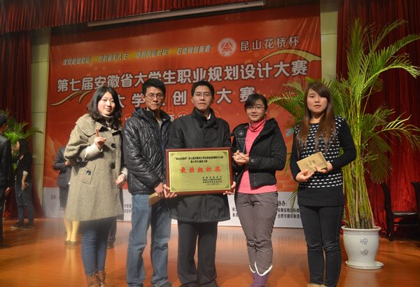 在安徽省第七届大学生职业规划设计暨创业大赛总决赛上,我校职业规划选手徐蓉蓉荣获“安徽省大学生职业规划之星金奖”、创业团队分别荣获“安徽省大学生创业之星银奖”和“安徽省大学生创业之星铜奖”,学校再次荣获“最佳组织奖”。