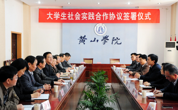 签约仪式上,徐成钢介绍了我校的办学历史,并代表黄山学院对黄山市委市政府多年来给予我校的关心和支持表示衷心的感谢。他说,此次大学生社会实践合作协议的签署得到了校地领导的高度重视,是双方积极合作的成果,契合了我校正在推进的“深化应用型本科内涵认识,提升应用型本科院校建设水平”教育思想观念大讨论。我校将紧密依托地方政府,广泛开展政策宣传,鼓励品学兼优的大学生踊跃参加实践活动,拓展就业机会,提高就业能力,确保此项合作顺利开展,承担起为地方经济建设与社会发展服务的重任。他表示,在深厚友谊和良好合作的基础上,通过加强双方的携手合作,一定能够实现互利共赢,为建设美丽黄山、美好安徽、实现中华民族伟大复兴的“中国梦”做出更多更大的贡献!