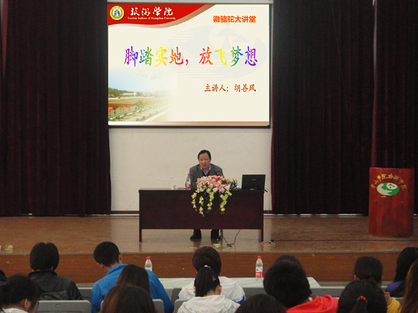 4月24日下午,黄山学院副院长胡善风应邀作客旅游学院徽骆驼大讲堂,为该院近300名学生干部作题为“脚踏实地、放飞梦想”的专题讲座。