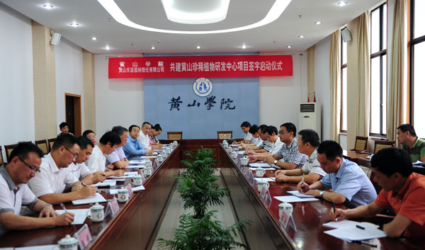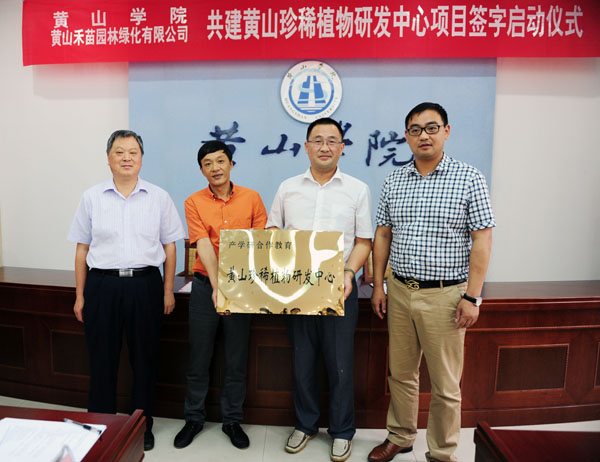 6月28日下午,黄山学院与黄山禾苗园林绿化有限公司共建黄山珍稀植物研发中心项目签字启动仪式在我校逸夫图书馆三楼会议室举行。院长汪建利为校企合作基地“黄山珍稀植物研发中心”授牌并讲话,徽州区委常委、政府副区长方应艰出席仪式。