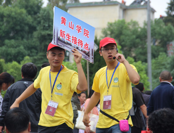 北区新生集中报到大厅、南区各学院报道点、新生接待引导站、青年志愿者服务台、食堂、宿舍……在校园内外的每一个迎新场所,都活跃着象杨勇这样的迎新志愿者,他们身着统一的迎新服装,带上醒目的小红帽,用热情的笑脸迎新每一位新生的到来。火车站、汽车站的志愿者们每天早上6点半准时到岗,举牌接站、维持秩序、安抚疲劳焦急的学生及家长、微笑引导进站上校车;校内迎新咨询台前的志愿者们则耐心细致地解答新生及家长的各类问题。迎新现场人流如潮,但随处可见志愿者们热情洋溢的青春笑脸,他们的身影一直在忙碌,一直在用微笑无声表达,给即将到来的新生营造温暖快乐、积极向上的大学氛围。