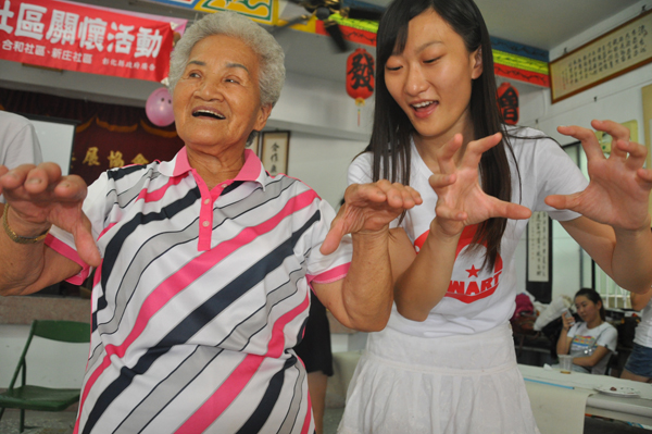 本届交流活动内容丰富,形式多样,主要由在台湾敏惠医学护理专科学校举行的参访“牙体技术科”、“美容保健科”、“幼儿保育科”等科系学术活动,以及访问八翁、重溪社区和在彰化二水家政服务中心进行的社区关怀老人服务活动组成。在前4天的参访活动中,我校志愿者们充分发扬服务精神,和台湾敏惠医学护理专科学校的师生融洽相处、团结合作。我校志愿者在活动中积极热心,与相关师生亲切互动,和台湾同胞结下了深厚的友情,给台湾师生留下了非常深刻的印象。接下来,志愿者们来到位于彰化县的二水家政服务中心,开始了为期4天的社区关怀老人服务活动。活动共4场,我校志愿者与其他高校志愿者们一起,在骄阳酷暑中为老人们送上演出和关怀。热力四射充满台湾风情的广场舞《爱情恰恰》、极具中国风的水墨画《竹香梅韵》以及优雅轻快的校园舞蹈《爱的华尔兹》等,都体现了志愿者们的激情、爱心和血浓于水的同胞之情。与此同时,很多到场的老人也积极展现自己,为志愿者同学送上了自己的墨宝,并在《爱拼才会赢》等歌曲中和志愿者们互动欢唱,志愿者与老人依依不舍,相互拥抱,浓浓的同胞之情在这里蔓延,当地电视台在晚间新闻中用了3分25秒的时间对同学们的精彩表现进行了播报。