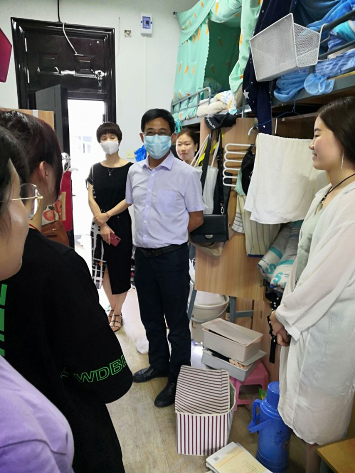 在学生宿舍,领导班子成员与毕业生们亲切交谈,仔细询问,大到就业、考研、考编、考证,小到行李打包邮寄等。当了解到部分毕业生即将步入理想的学校继续深造,很多毕业生已经找到了满意的工作岗位,该院领导和老师十分欣慰,希望大家今后能够永葆进取之心,努力打拼出属于自己的美好明天。最后,院领导还贴心地提醒毕业生们返乡路上要注意安全,做好个人防护。