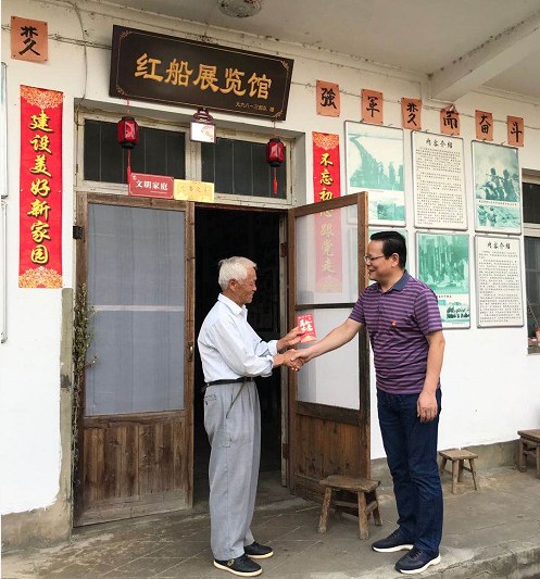 党支部书记王国平代表支部全体党员向红船展览馆创办人姚华亮老人表示了慰问。姚华亮老人向支部党员介绍了自己的生平,讲述了开办展馆的初衷和创办过程,并向党员同志讲解了红军长征、抗日战争、解放战争、历次党代会情况、党领导下的人民军队的发展史和强军史以及毛泽东同志及其家属的英烈事迹。