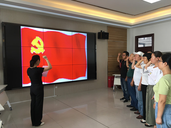 会后,该院全体教师党员在鲜艳的党旗前重温入党誓词,在庄重的仪式中接受党性教育。