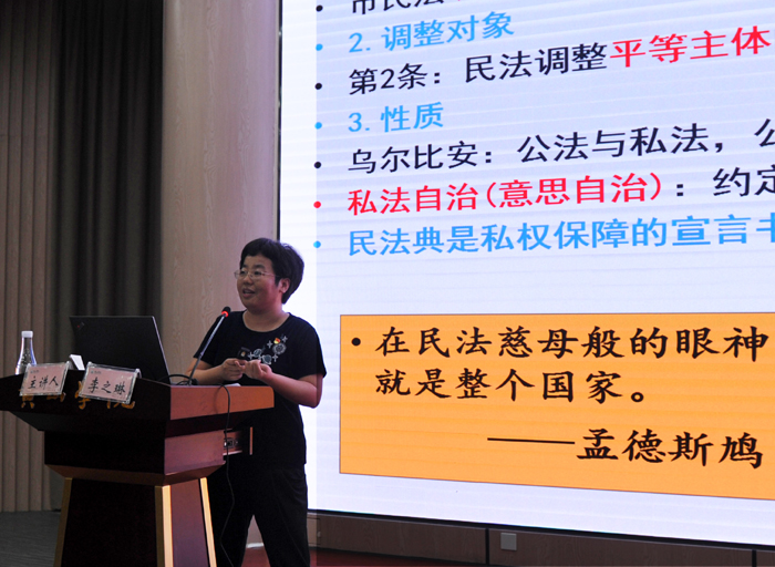 李之琳从“社会生活的百科全书、盛世修典的重大成果、民法典的重要内容”三个方面对《中华人民共和国民法典》进行了解读。她阐释了民法典编纂的基本背景、重大意义,民法典的构成及对社会热点问题的积极回应。