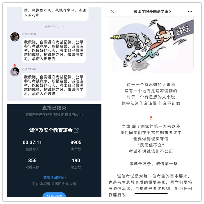 近日来该院微信公众号上发布诚信考试主题教育系列推文,重点宣传解读有关考试违纪作弊等内容的法律法规,引导学生自觉抵制违纪作弊行为,树立正确的考试观。