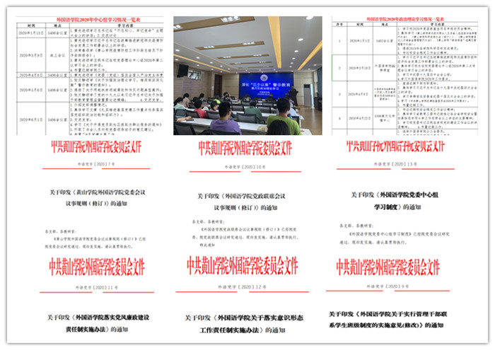 良好的学习成效来自于成熟有效的党建工作制度体系和机制。学院党委不断完善组织的领导制度、组织制度、工作制度和生活制度,制定并认真贯彻《党政联席会议制度》《学院党委会议制度》等规章制度,确保了学院党委的示范引领作用,也达到了决策议事规则清晰规范、执行到位的效果。不断完善意识形态工作体系,加强师德师风建设,强化制度建设,制定并实施《民主生活会制度》《党员活动日制度》《党内表彰激励制度》等,形成《外国语学院制度汇编》,有序的制度建设保证了各项工作能够坚持正确的政治立场与方向,也进一步推动了学院工作的健康、稳步、和谐发展。