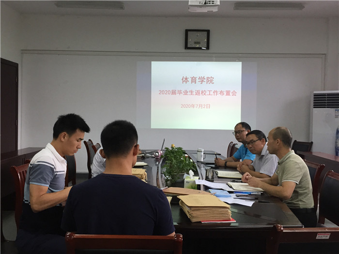 7月2日下午,体育学院在风雨操场三楼会议室召开2020届毕业生返校工作布置会,该院党政领导、毕业班辅导员和行政管理人员参加会议,毕业生通过钉钉视频一同参会。