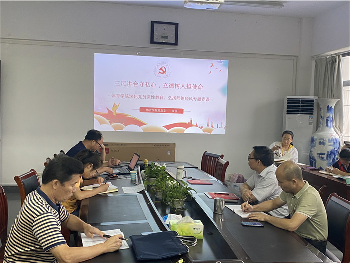 7月15日下午,体育学院组织开展“加强廉政文化建设”和“强化党性观念,弘扬师德师风”专题党课学习活动,本次党课分别由该院党总支副书记刘双四和副院长张俊讲授。全体教职工党员参加了党课学习,该院党总支书记杨和健主持本次党课。