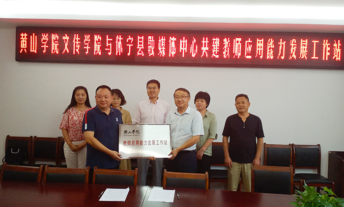 8月6日下午,文化与传播学院党政领导前往休宁县融媒体中心,举行文传学院教师应用能力发展工作站合作共建协议书签字暨授牌仪式。