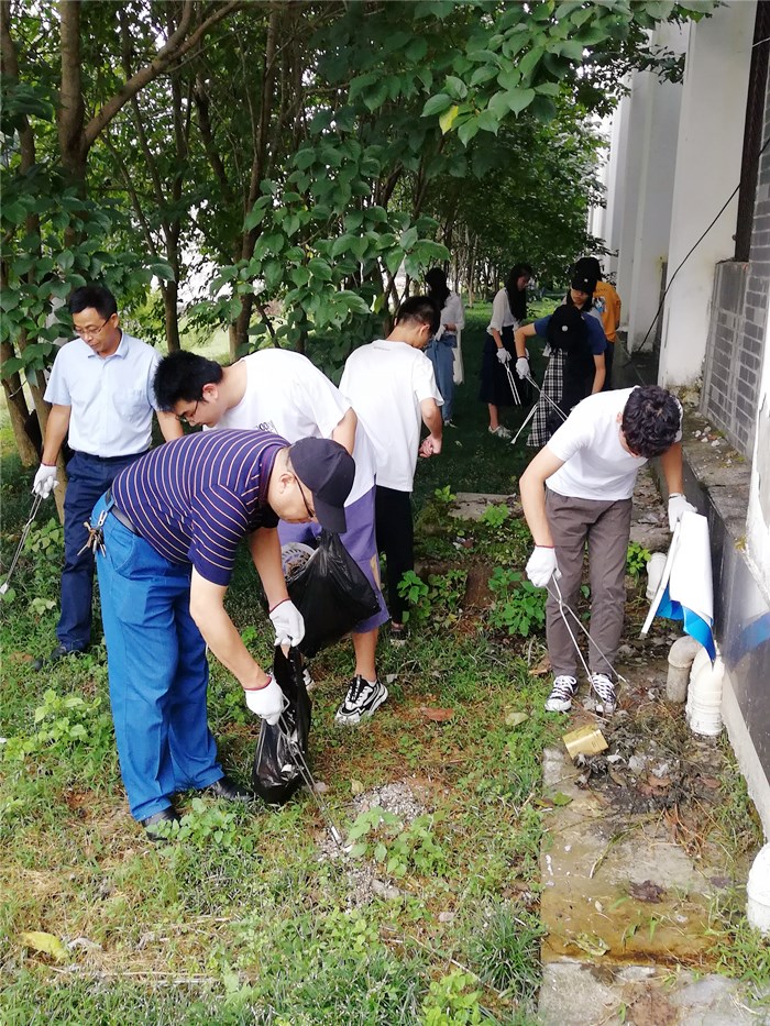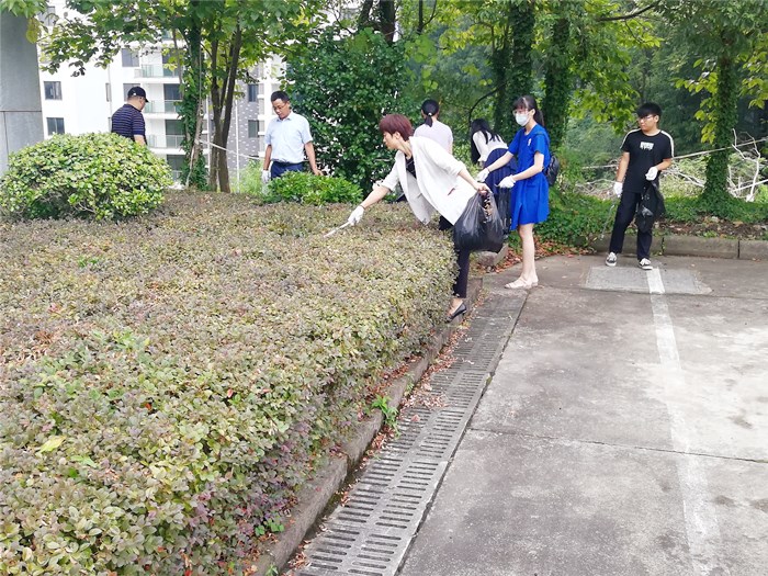 9月11日下午,文学院领导班子、师生党员及学生干部代表在逸夫图书馆周边及北区高知楼开展清扫活动。师生分组合作,分工明确,针对部分卫生死角进行彻底清除。