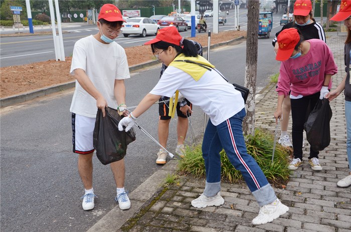9月12日上午,为积极响应黄山市文明城市创建工作,文学院师生党员、学生干部代表赴文峰桥南端开展街道卫生清扫活动。