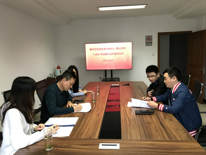 9月23日,经济管理学院院长赵士德一行3人赴徽州区投资促进发展中心签订“十四五”规划编制合作协议。徽州区投资促进发展中心主任许敏亮、副主任占俊和科长郑昱晟等热情接待赵士德一行。