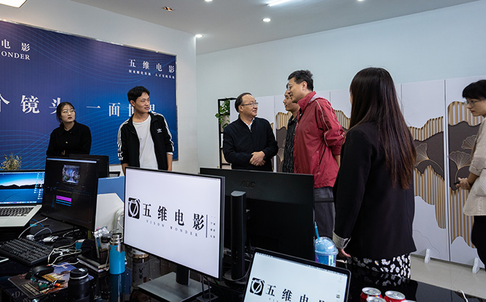 9月25日下午,文传学院党委书记汪家庚、副院长王俊峰、院党委副书记郑静及戏剧影视文学、广播电视编导专业老师、专职辅导员考察五维电影工作室,推进建立院企产教融合的运行机制,着力拓展应用型人才培养途径,切实提升人才培养质量。