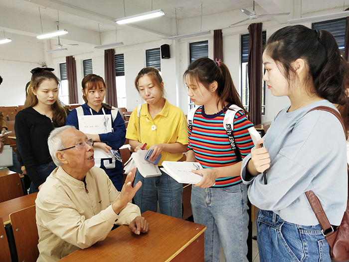 致辞结束后,王德中向18新闻班同学赠送《文章•写作•教学》一书,同学们与王德中交流互动。汤怀傲同学说:“听了王德中先生的教诲,让我对文章写作和学习上都有了很多新的感悟,这次的赠书活动真的非常有价值。”