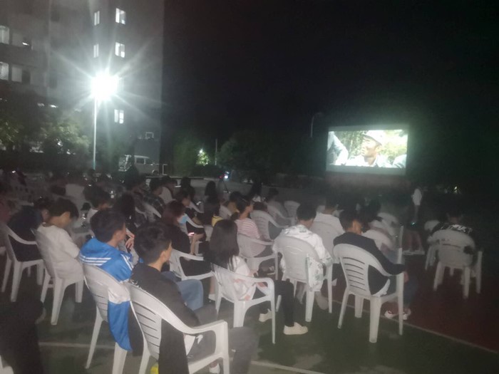 10月1日晚,首部影片《战士》在率水校区篮球场展映,吸引百余名学生到场观看。该影片讲述了抗战老兵王二在革命烈士纪念碑前回忆起了自己曾经的前辈、导师及战友,叙述战火纷飞的年代,侵华日军侵害王二所在的村子的故事。每一个人物都彰显了战争年代革命前辈的不屈与顽强,英勇无畏的形象深入人心。