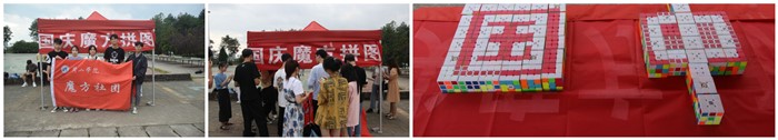 魔方社团举办“迎中秋,庆国庆”魔方拼图活动,吸引众多学生参与其中。在工作人员指导下,同学们独立完成所需魔方拼图,共同合作完成拼图与拼字。