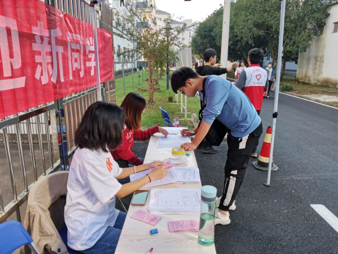 当日,志愿者们早早地到达宿舍楼和迎新接待点,当新生与家长一进入学校大门口,建筑工程学院的志愿者们面带着微笑迎上去:“你好”,“欢迎来到学校”,并接过新生和家长手中沉重的行李,帮忙登记核查入学信息。