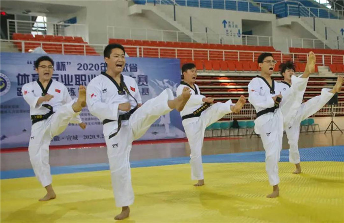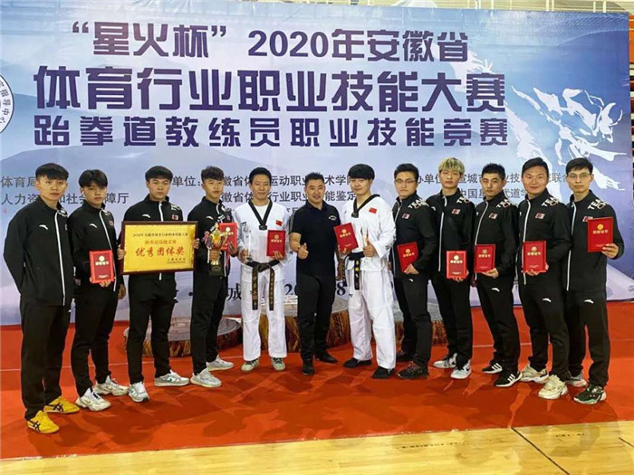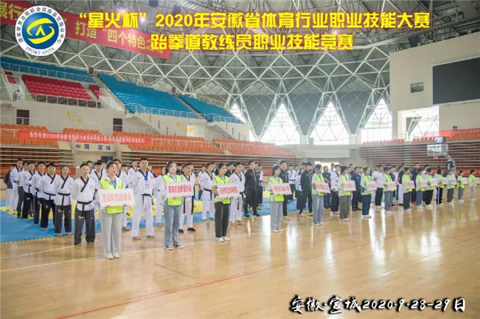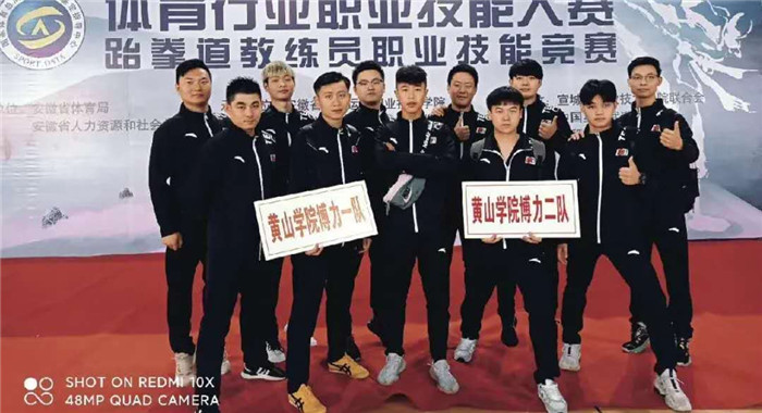 9月28-29日,“星火杯”2020年安徽省体育行业跆拳道职业技能大赛在宣城市体育馆举行,比赛由安徽省体育局、安徽省人力资源和社会保障厅主办。来自全省各地高校和道馆机构约300名从事教练员岗位的跆拳道人士齐聚一堂。黄山学院博力队代表体育行业特种技能鉴定站黄山学院站参加了10个项目的比赛。