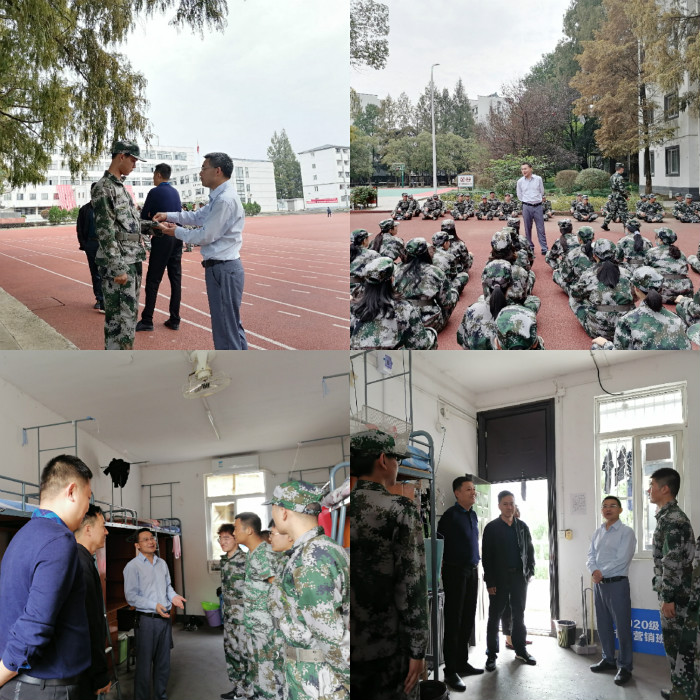 10月14日上午,经济管理学院党委书记胡永政、院长赵士德、党委副书记吴边及全体新生辅导员检查2020级新生军训工作并深入宿舍看望慰问全体新同学。