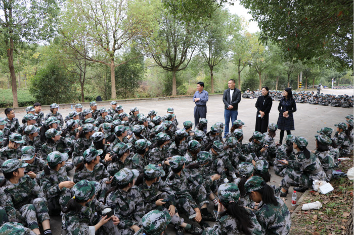 10月14日,外国语学院党政领导来到率水校区军训队列中看望并慰问新生。