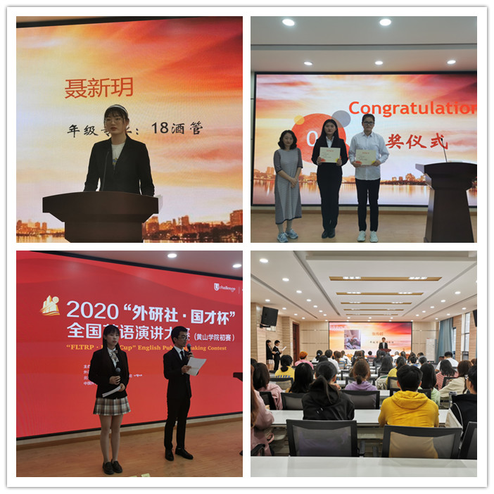 为提高学生的口语表达能力,提供更多展示自我的平台,10月14日下午, 2020年“外研社·国才杯”全国英语演讲比赛黄山学院决赛在逸夫楼5306教室举行。来自全校各专业的百余名学生到场观赛。