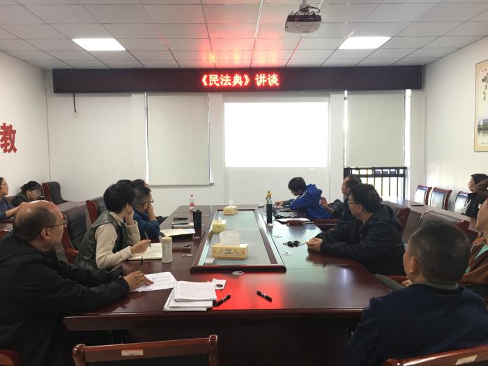 10月20日下午,马克思主义学院在该院会议室开展“《中华人民共和国民法典》讲谈”主题党日活动。活动由该院党总支书记曾小保主持。讲座特邀民主党派人士程旭副教授主讲。全体党员参加了活动。