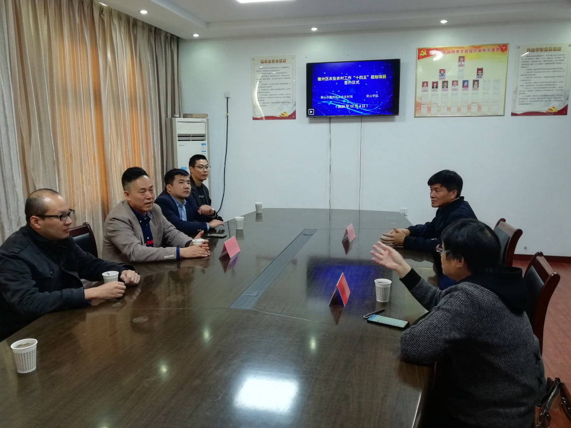 11月4日上午,经济管理学院院长赵士德带领方亮、黄予川、韩云超、王荣宇等教师赴黄山市徽州区农业农村局朱银钱洽谈“十四五”规划编制事宜。徽州区农业农村局局长接待赵士德一行。