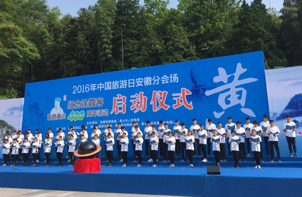 5月19日,由安徽省旅游局、黄山市人民政府主办,黄山风景区管委会、黄山市旅游委员会、黄山旅游集团公司、黄山旅游发展股份有限公司承办的“2016年中国旅游日安徽分会场—纪念徐霞客首登黄山400周年”活动在黄山风景区南大门举行。受学校委派,体育学院60名学生参加了活动的启动仪式。启动仪式上,他们给游客朗诵了《徐霞客黄山游记》(节选),参加了重走霞客路、弘扬霞客精神的活动。