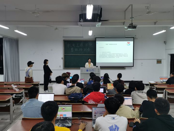 机电工程学院易班工作站于11月17日晚在文端楼2311开展易班活动月培训交流活动,校易班发展中心教师吕晓珍,旅游学院,机电工程学院易班工作站站长、副站长以及该院各班易班班长参加。