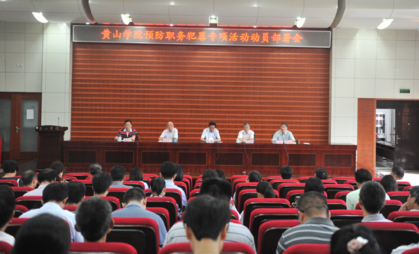 6月22日下午,我校在逸夫图书馆二楼报告厅召开预防职务犯罪专项活动动员部署会。校党委书记汪枫,党委副书记、校长汪建利,副校长胡家俊,党委副书记、纪委书记叶军,副校长胡善风出席会议。校副科级以上干部、专职辅导员、各党总支(直属党支部)纪检委员近200人参加会议。汪枫作动员讲话,叶军主持会议。