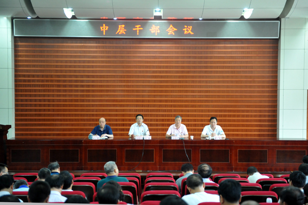 7月1日下午,我校在逸夫图书馆二楼报告厅召开中层干部会议。校党委书记汪枫,校长汪建利,副校长胡家俊、胡善风出席大会。汪枫主持会议,汪建利总结学校上半年工作并部署暑期相关工作。