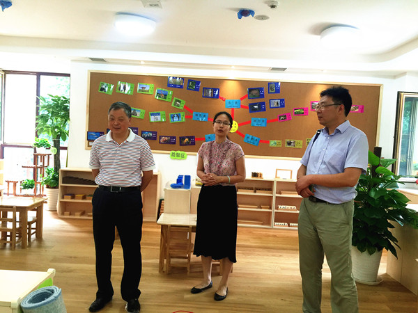 在绿橙国际幼儿园,汪建利参观了幼儿园的功能区布局,听取林辣园长对幼儿园以个性化教育为本的运营模式的详细介绍,并对学前教育专业定向合作培养的学生选拔、课程设置、合作授课教师安排、实习实训等细节性问题提出了具体指导意见。