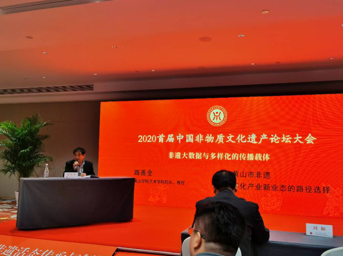 本次大会以“新时代非遗活态传承与创新”为主题,由人民日报社新闻信息中心、中国非遗保护研究中心、中国文化产业发展研究中心、黄山市人民政府等主办。大会开幕式举行了非遗传承人法律援助中心、《中国非遗大全》编委会、广东金花茶手工技艺研究基地、江西省绿色集团茧丝绸手工技艺研究基地、江苏费氏食品传承技艺研究基地授牌仪式。200余名非遗专家学者、国家级非遗传承人等齐聚黄山市,就非遗手工艺的活态传承、非遗文化与工匠精神、非遗大数据与多样化的传播载体、非遗文化与特色小镇共融共生、非遗文化与文旅融合创新等课题展开热烈研讨。路善全接受了大会《中国非遗大全》安徽编委会的授牌,并在“非遗大数据与多样化载体”论坛上作“论黄山市非遗数字化产业新业态的发展”的主题报告。