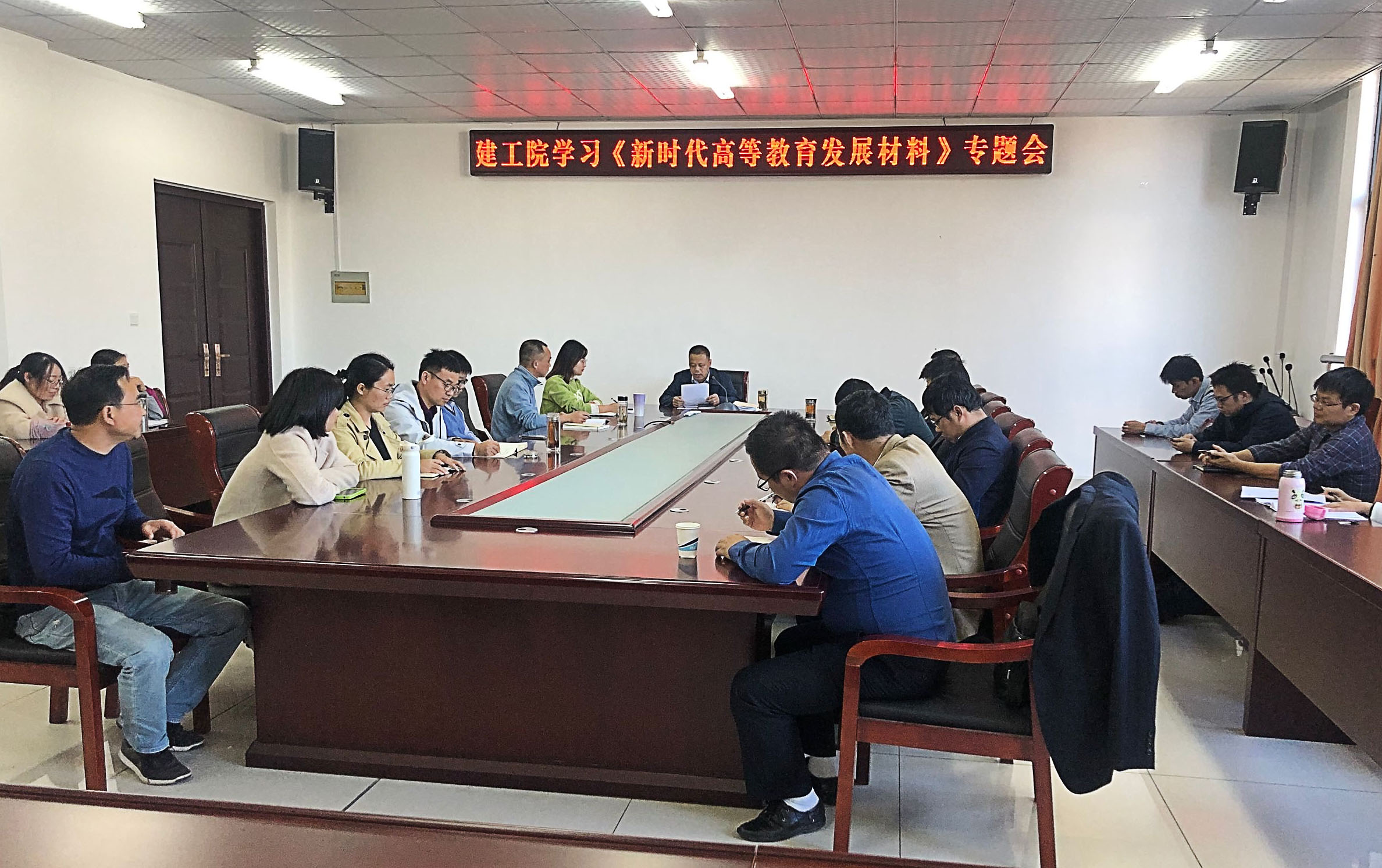 11月18日下午,建筑工程学院在文启楼三楼会议室组织全院教师集体学习《新时代高等教育发展系列论述》专题会,学习会议由该院党委书记范兴华主持。