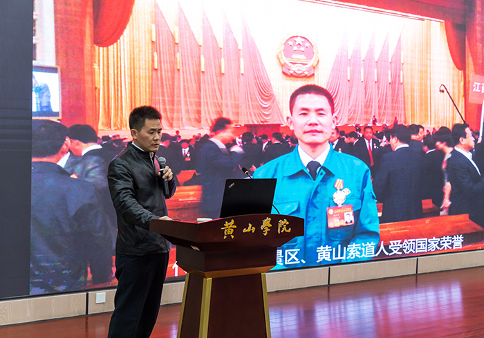 11月26日晚,在文端楼二楼报告厅,全国劳动模范、全国五一劳动奖章获得者、黄山玉屏索道公司副总经理姚文华做客文传学院“先锋讲坛”,为文化与传播学院党员师生和入党积极分子作题为《云端上的坚守》报告。报告会由文化与传播学院党委书记汪家庚主持。