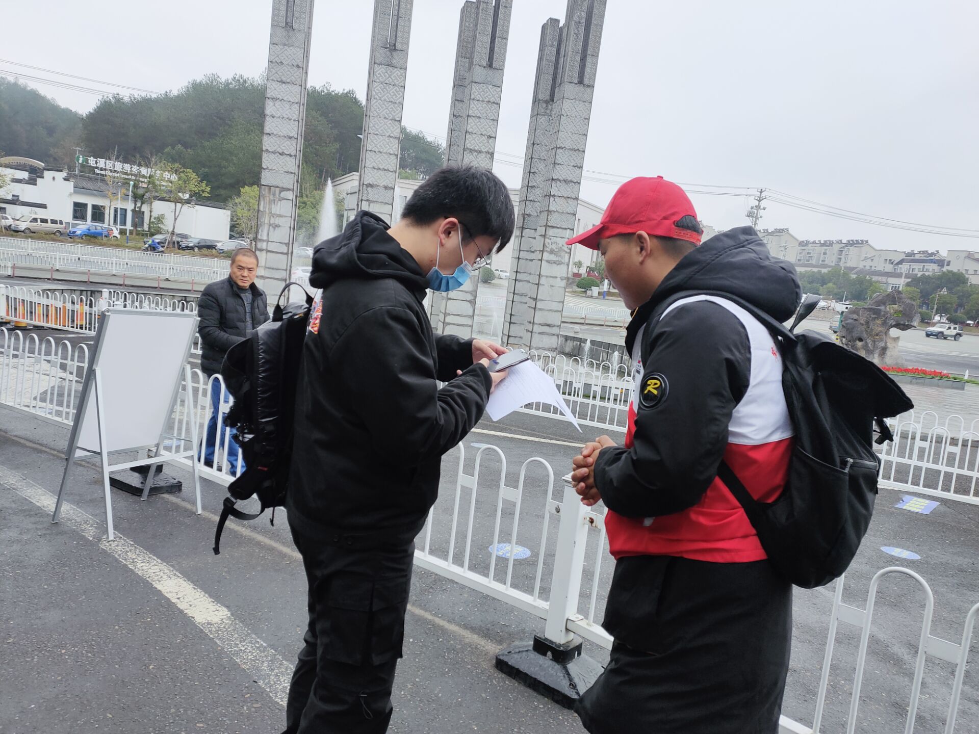 为确保此次考试顺利进行,便于考生们顺利到达自己的考试地点,该院志愿者提前来到指定的服务点,根据职责分工,道路引导的志愿者们,分布在学校的各个道路路口,为前来考试的考生们指引道路,确保他们能顺利快速到达考场;另一部分志愿者则在学校门口迎接,协助指导考生通过手机扫码,以安康码验证安全身份,顺利进入校园参加考试。