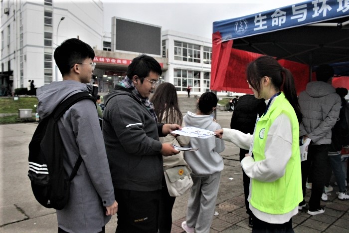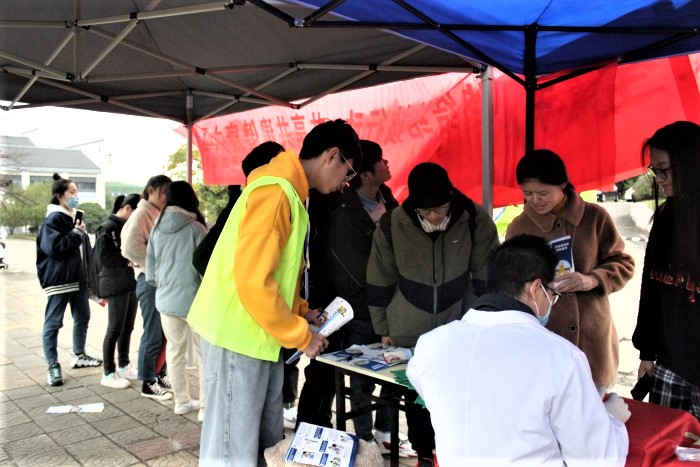 11月26日下午,生环学院携手市疾控中心在率水校区一食堂对面举办艾滋病宣传活动。