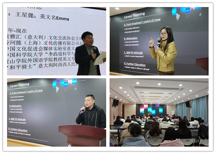 本次“求真·励学”讲座邀请了外国语学院兼职教师王星懿博士作题为“职业生涯规划”的专题讲座。王星懿首先从当前就业形势引出本次讲座主题。随后,分别从雇主和员工的角度分析目前市场的就业情况,启示同学们应进行自我激励和外在激励,不断完善自我,敢于走进国际,开拓视野。王星懿强调了技能和态度的重要性以及长远教育对自身发展的益处。她表示,同学们对自己的职业规划要有一个全新的认识。对于毕业后选择继续学习深造还是选择就业,要有一个明确的规划,并为此而努力。王星懿结合自身经历给同学们分享了职业生涯中的经验,对同学们提出的各种困惑给出意见和建议。